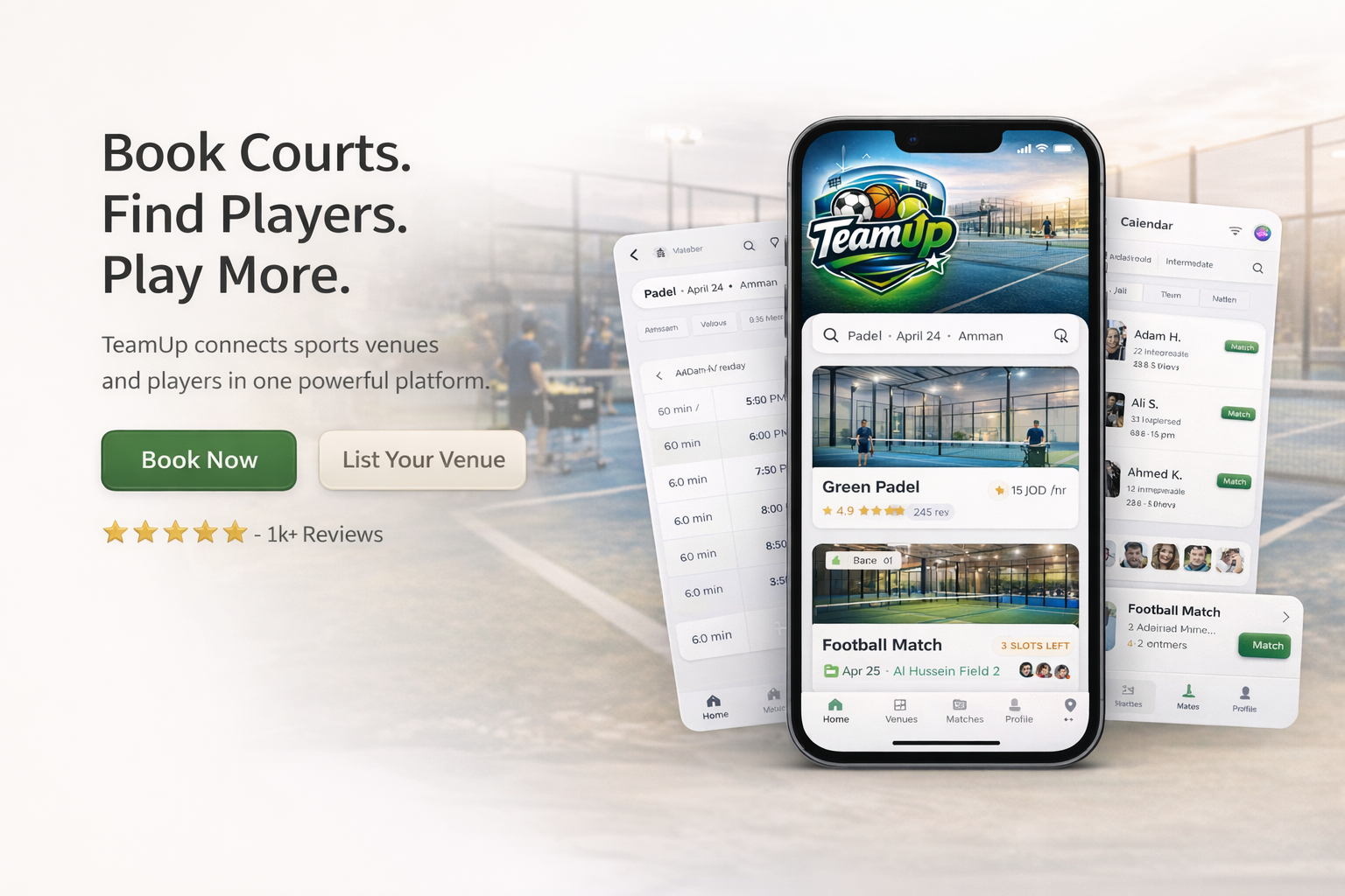 TeamUp is an intelligent sports platform that transforms how players, teams, and venues connect. Our unified ecosystem streamlines venue bookings, enables seamless team coordination, and uses smart match-making to create vibrant, engaged sports communities.